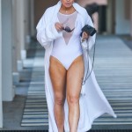 La actriz de 26 años de edad, al descubrir que estaba siendo fotografiada, posó intencionalmente según lo muestran las siguientes imágenes. Lohan al parecer ha dejado atrás sus gustos por los vestidos de baño de dos piezas, ya que podemos verla en un vestido de baño blanco de una sola pieza, con una reveladora transparencia en forma de V.