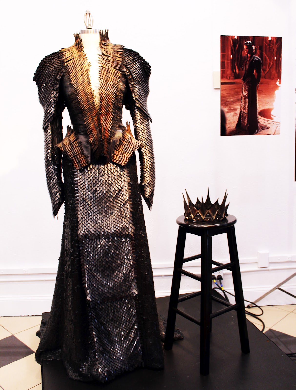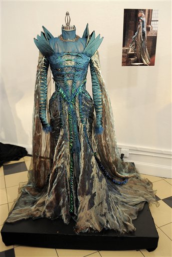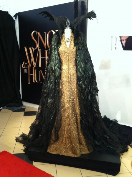 La diseñadora para disminuir la tortura que representaba ponerse y quitarse estos trajes empleó 50 personas para que ayudaran al elenco, pero sobre todo a la reina Ravenna que tenía que usar vestidos de alas duras y quebradizas y malla de metal.