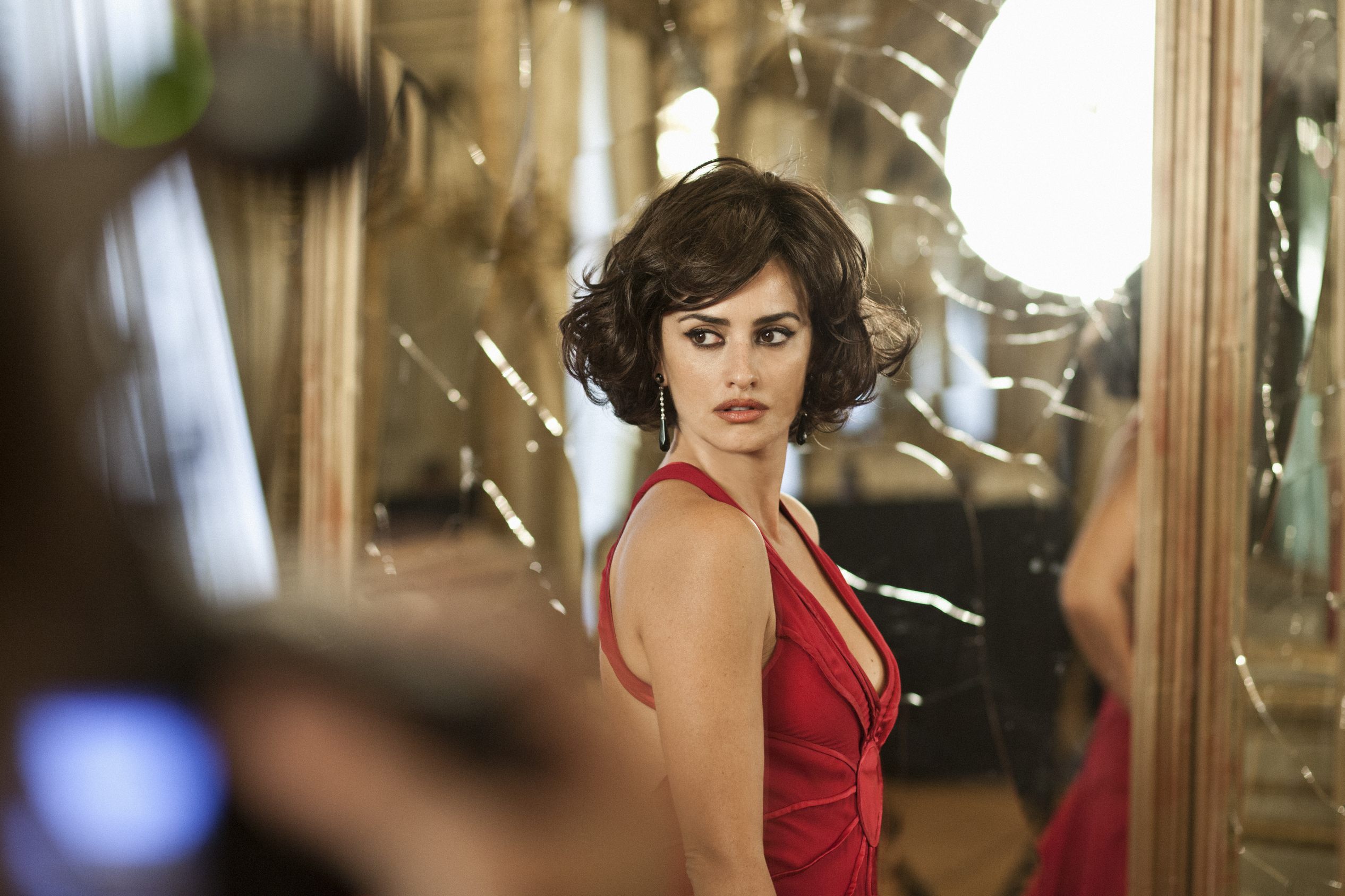 En las escenas, Cruz viste siempre vestidos y zapatos de rojo intenso de firmas como Monique Lhuillier y Salvatore Ferragamo y aparece adornada con joyas de Chopard, entre otras firmas.