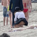 Salma Hayek intentaba enseñarle a Pierce Brosnan como amarlo en el rodaje de ‘How to Make Love Like an Englishman’ y el viento le enseñaba como hacerle el amor a su falda. La fuerte brisa de L.A. California dejó a Salma Hayek al mejor estilo de Marilyn Monroe, ya que mientras rodaba su nueva película en Malibú, el viento de la playa levantó su falda en varias ocasiones