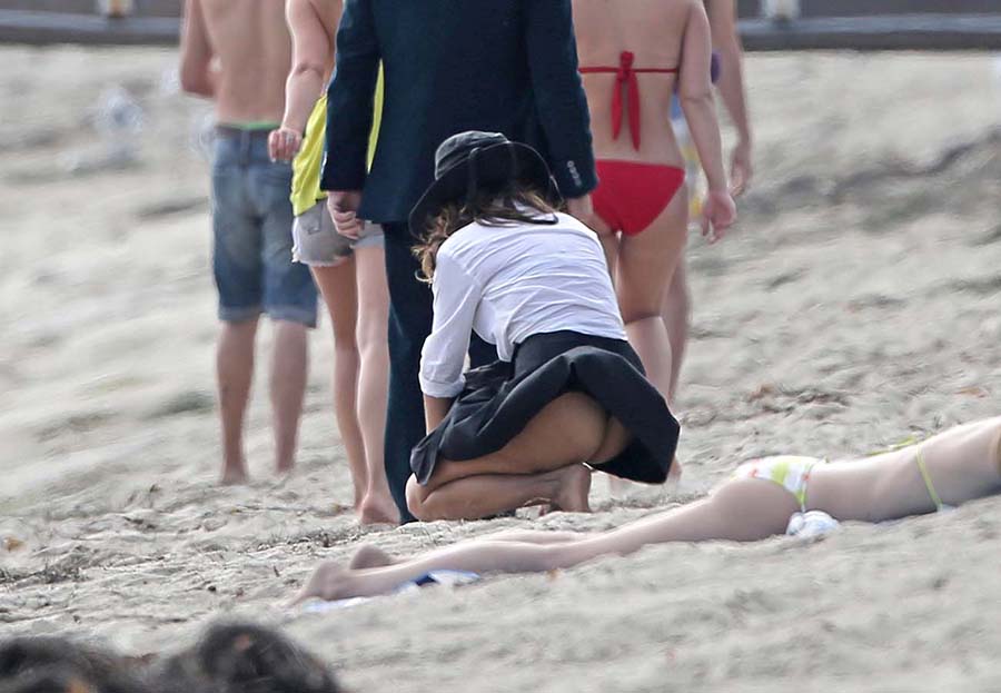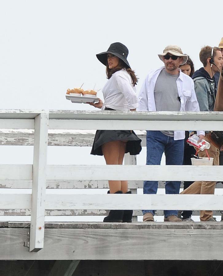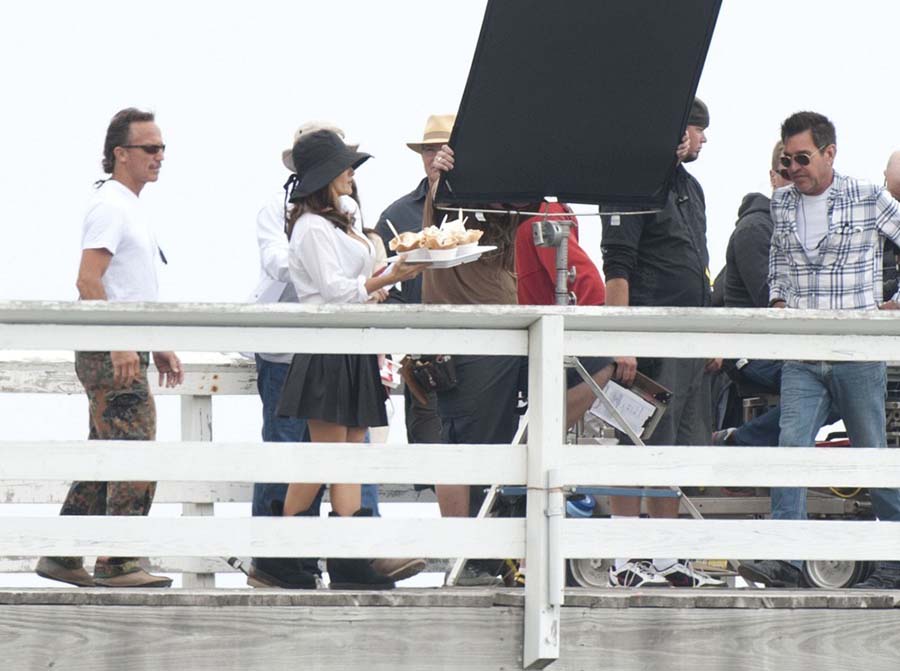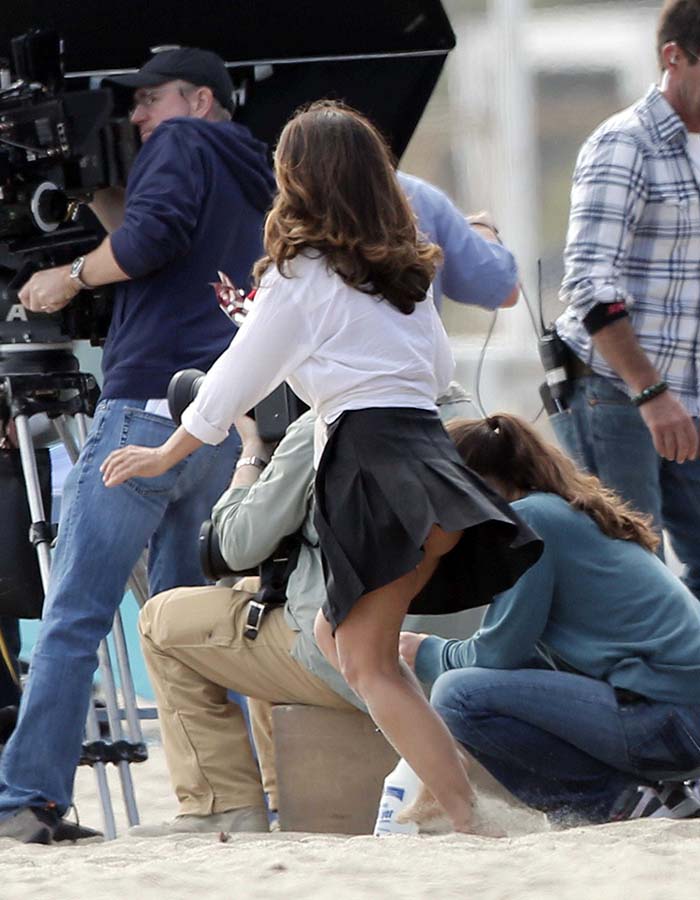 Salma Hayek intentaba enseñarle a Pierce Brosnan como amarlo en el rodaje de ‘How to Make Love Like an Englishman’ y el viento le enseñaba como hacerle el amor a su falda. La fuerte brisa de L.A. California dejó a Salma Hayek al mejor estilo de Marilyn Monroe, ya que mientras rodaba su nueva película en Malibú, el viento de la playa levantó su falda en varias ocasiones